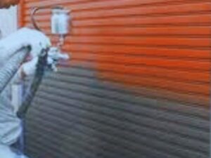 吹き付け塗装は、きめ細かな仕上がりが特徴。特に金属製シャッターなどには最適です。